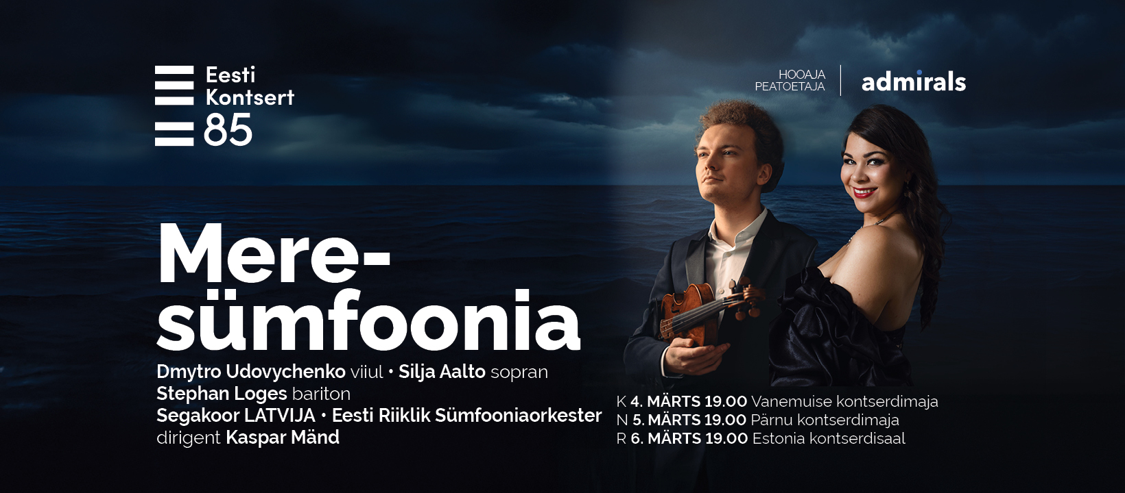 Märtsikuu esimesel nädalal esitab võimas Latvija koor ühes Eesti Riikliku Sümfooniaorkestri ja vokaalsolistidega Tartus, Pärnus ja Tallinnas Ralph Vaughan Williamsi „Meresümfoonia“. Kontserdil kõlab Ukraina viiuldaja Dmytro Udovychenkolt soleerimisel ka Edward Elgari viiulikontsert. Suurejoonelist inglise muusika kontserti dirigeerib Kaspar Mänd.