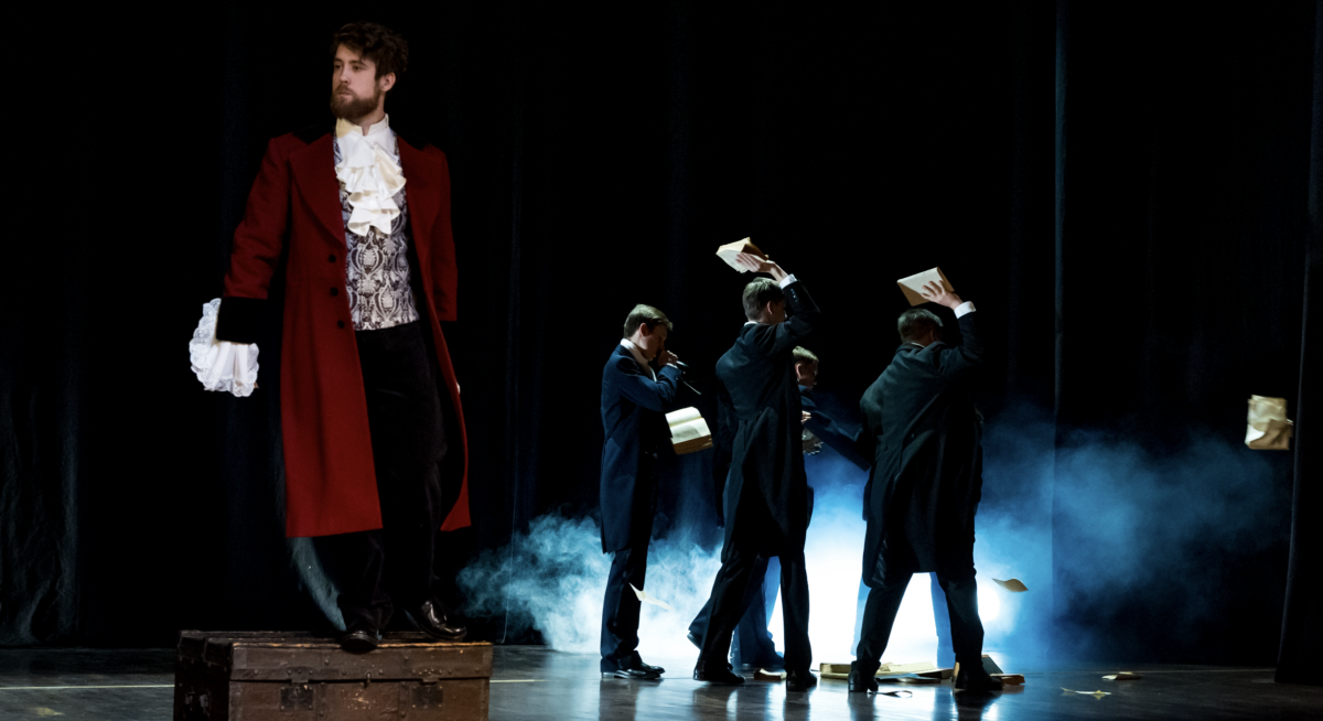 „Kotzebue oli tohutu hasartmängur, tal oli kolm naist, 18 last, tema materjali mängiti Euroopas, aga ka Indoneesias ja Ameerikas mingil hetkel rohkem kui Shakespeare’i, ta reisis väga palju, ta oli kõrgelt haritud ja väga laia silmaringiga mees,“ kirjeldab Elina. Iga tähe sära aga lõpuks kustub, kahjuks ka tema oma. Kotzebue mõrvati 1819. aastal Saksamaal kui Venemaa salakuulaja.